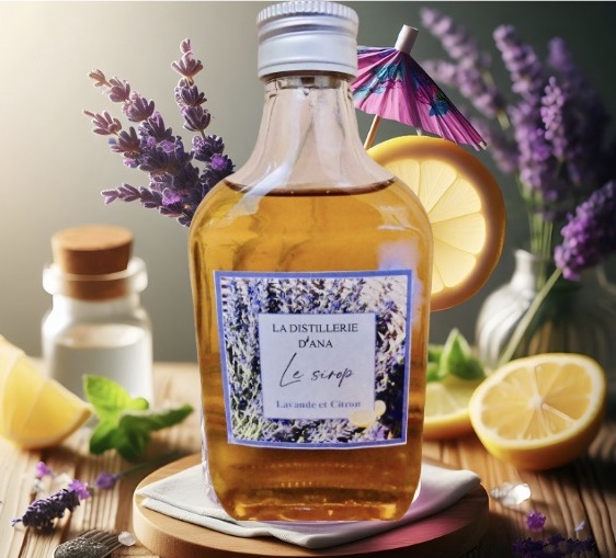 - Sirops de rose, de feuilles de menthe, sauge, lavande ou thym citron de la Distillerie d’Ana